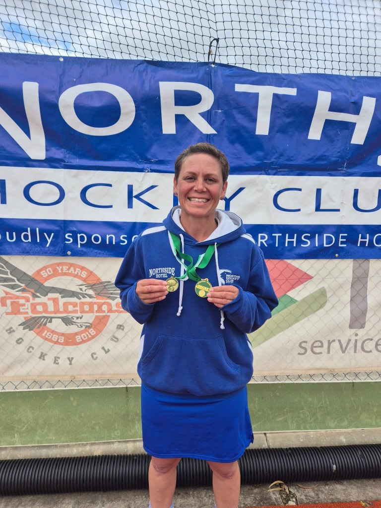 Sunday was grey and cool for the Div 2 Women’s grand final – which is helpful because they went toe to toe, and ended up with a draw, so another team from the Norths Club was off to the 8 Second “wobble off”. After 5 penalties each, Norths and United were all locked up at 5 all. With the return of Linda Sumbler to the top of the circle, the deadlock was quickly resolved in golden goal with Linda bringing home the win, and winning Best on Ground! A special shoutout to Tash Towne in goals playing an absolute screamer.
