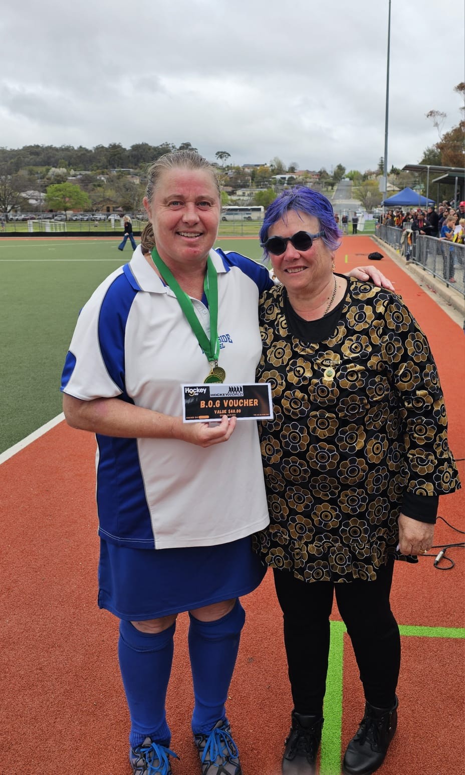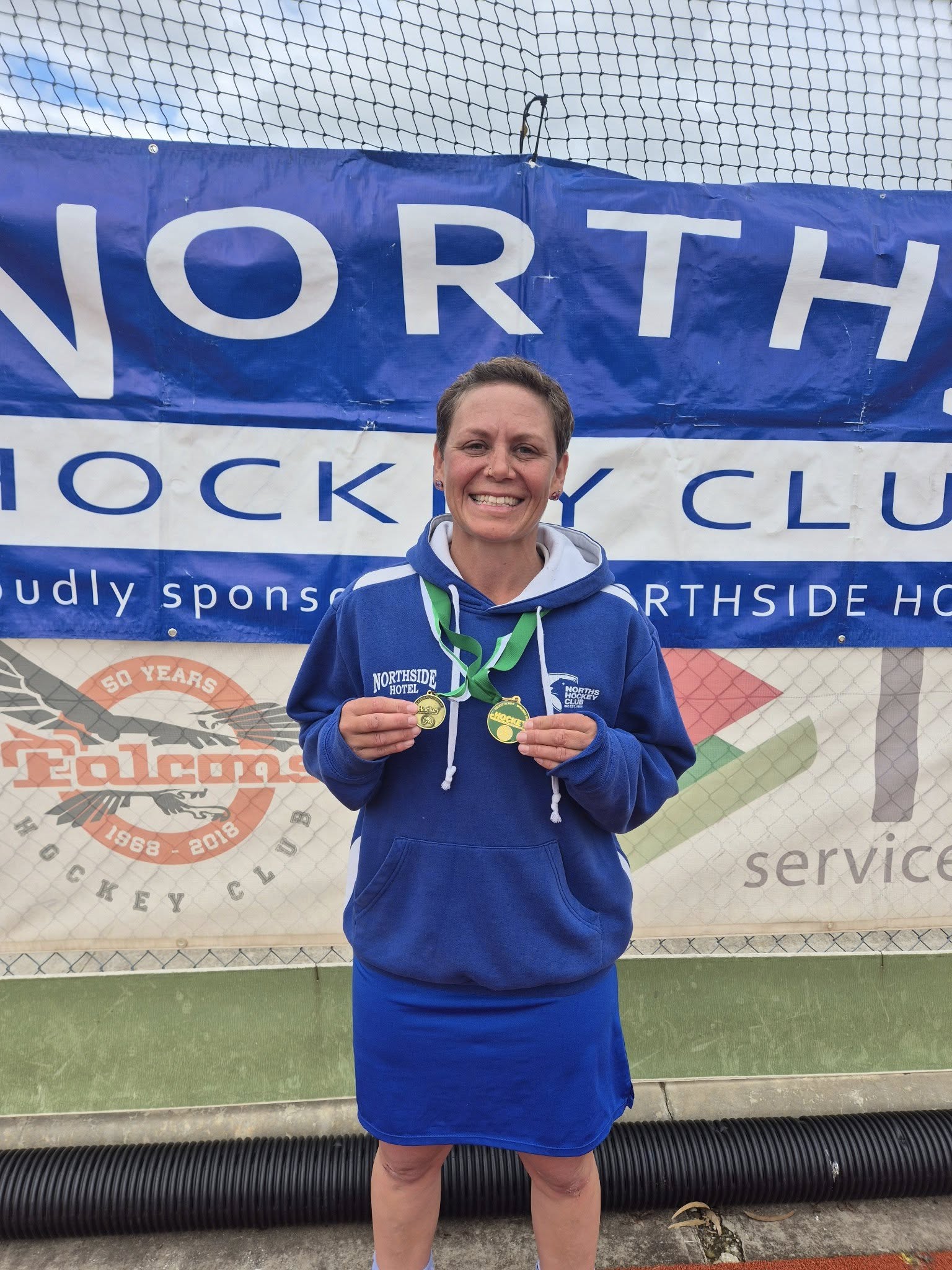 Sunday was grey and cool for the Div 2 Women’s grand final – which is helpful because they went toe to toe, and ended up with a draw, so another team from the Norths Club was off to the 8 Second “wobble off”. After 5 penalties each, Norths and United were all locked up at 5 all. With the return of Linda Sumbler to the top of the circle, the deadlock was quickly resolved in golden goal with Linda bringing home the win, and winning Best on Ground! A special shoutout to Tash Towne in goals playing an absolute screamer.